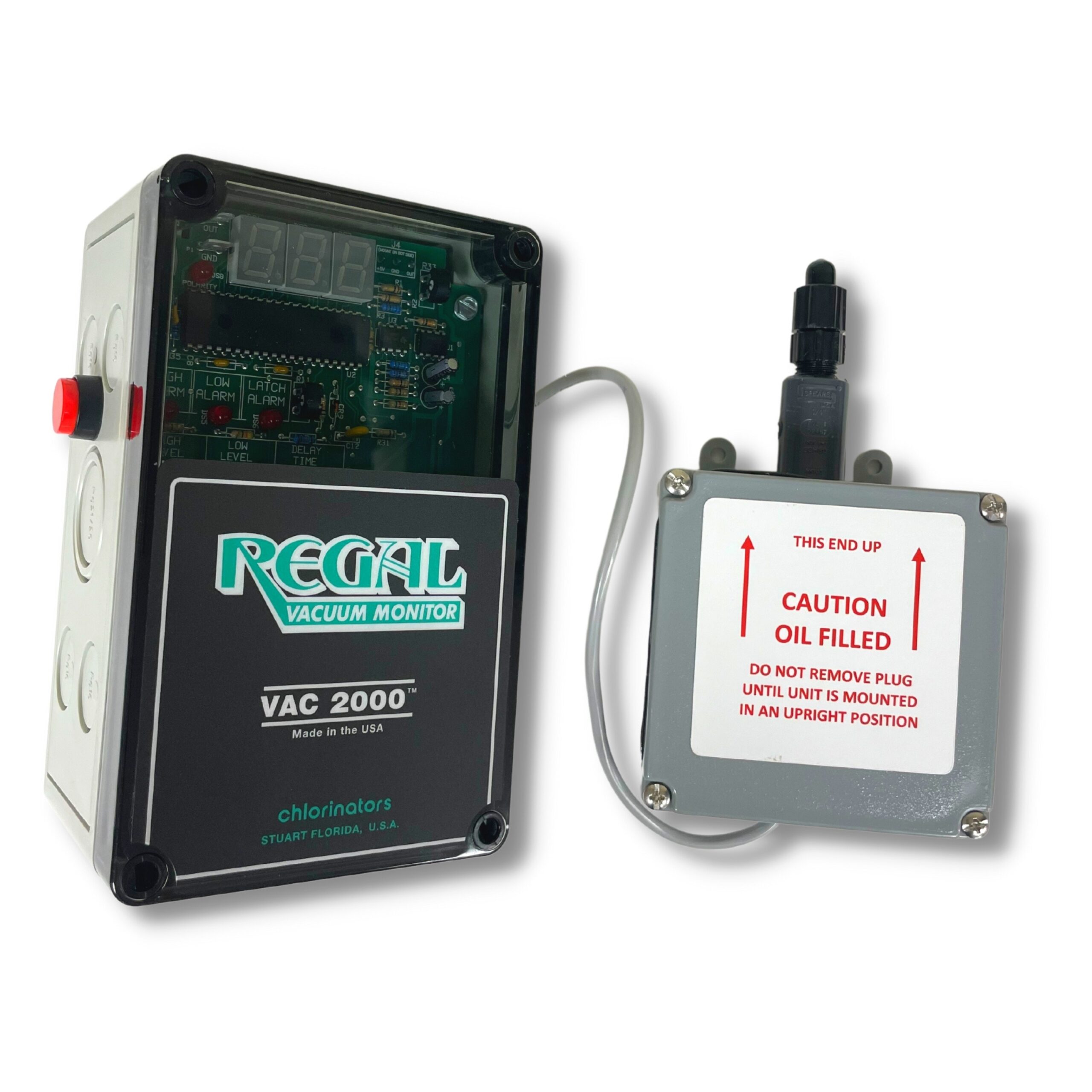 The Regal VAC 2000 is a fully electronic vacuum monitoring system designed for reliable detection of high and low vacuum conditions in gas feed and chemical dosing systems. Built for durability and precision, it provides continuous digital vacuum display and independent alarm control for critical monitoring applications.
